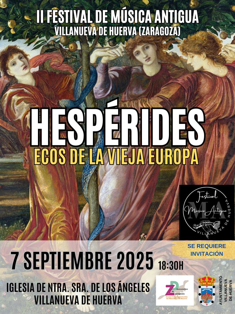 Las “Hespérides”, tres ninfas que cuidaban un maravilloso jardín en un lugar remoto de occidente, han sido desde la Antigua Grecia una referencia cuando se habla del uso de la música para apaciguar las almas. Hesíodo les da el epíteto de “las de voces claras”. Estas tres ninfas custodiaban un jardín-huerto en el que crecían todo tipo de frutales. Entre los más valiosos se encontraban los manzanos, cuyos frutos dorados proporcionaban la inmortalidad a quien los probaba. Se les conoce también como “hijas del atardecer” o “ninfas del oeste”. Tres mujeres que tañían y cantaban a la hora en que el día y la noche se fundían.