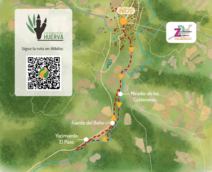 Nuestra ruta se halla emplazada en pleno valle del río Huerva, aguas arriba de la población de Villanueva de Huerva, dentro de la comarca del Campo de Cariñena. Nuestro río es el cauce fluvial de mayor entidad de la comarca, con sus 128 km de longitud en su recorrido mayoritariamente de sur a norte, le llevará desde su nacimiento en los montes de Cucalón, en la localidad de Fonfría a 1280 metros de altitud, hasta la misma ciudad de Zaragoza donde tributará al Ebro por su derecha.