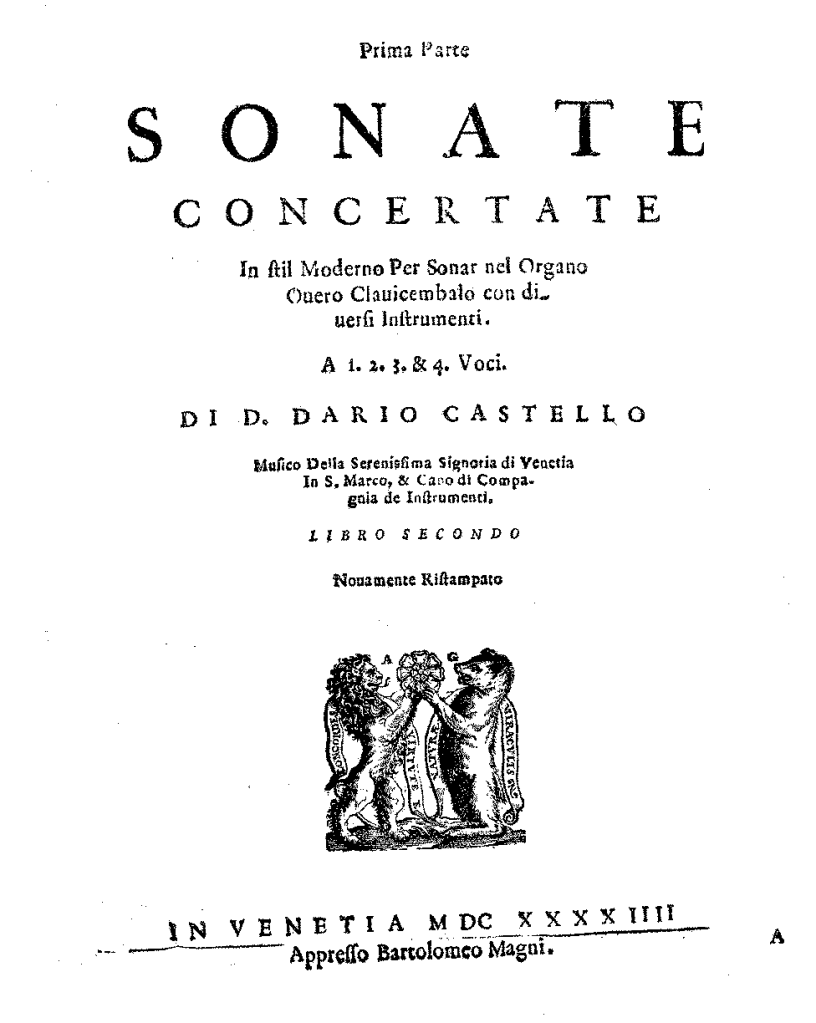 Sonata prima (Sonate concertante in still moderno, libro secondo) DARIO CASTELLO (1602-1631)