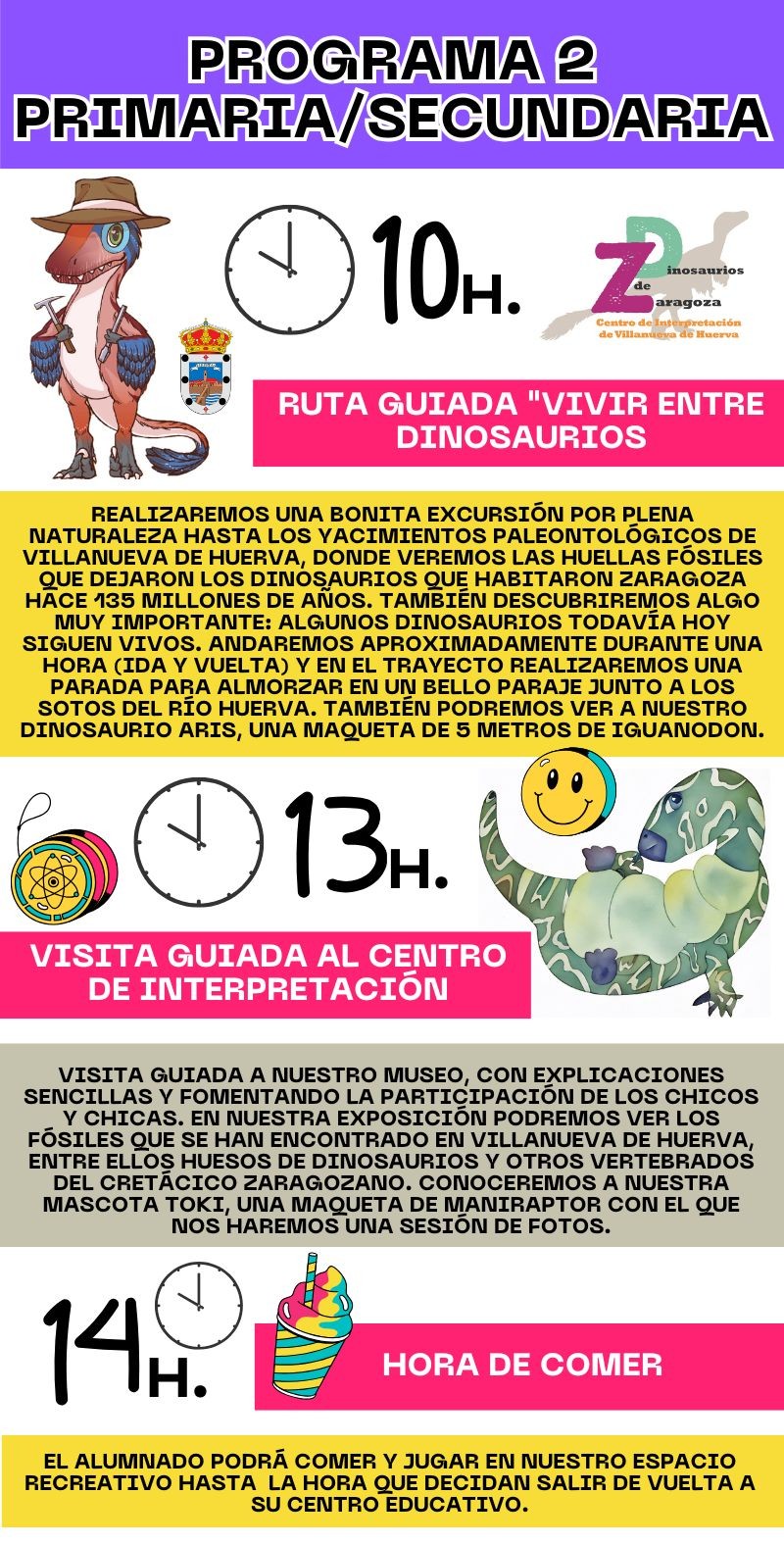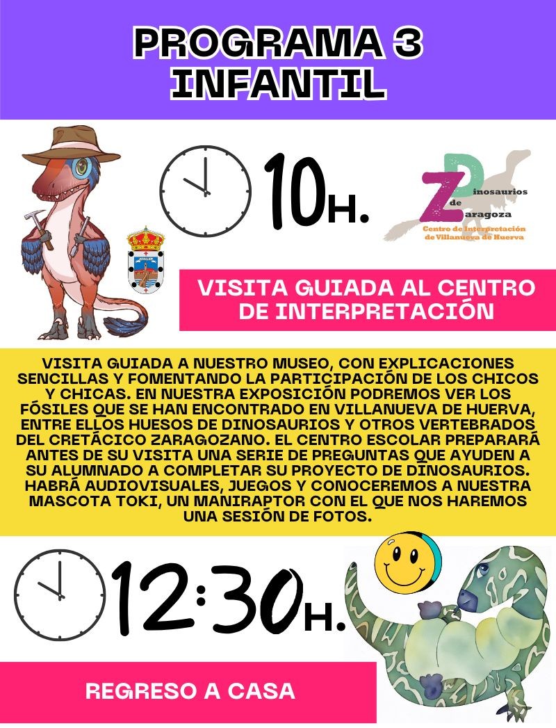- Se seguirá un programa de actividades previamente acordado entre el responsable del Centro educativo y el CDI Dinosaurios de Zaragoza.