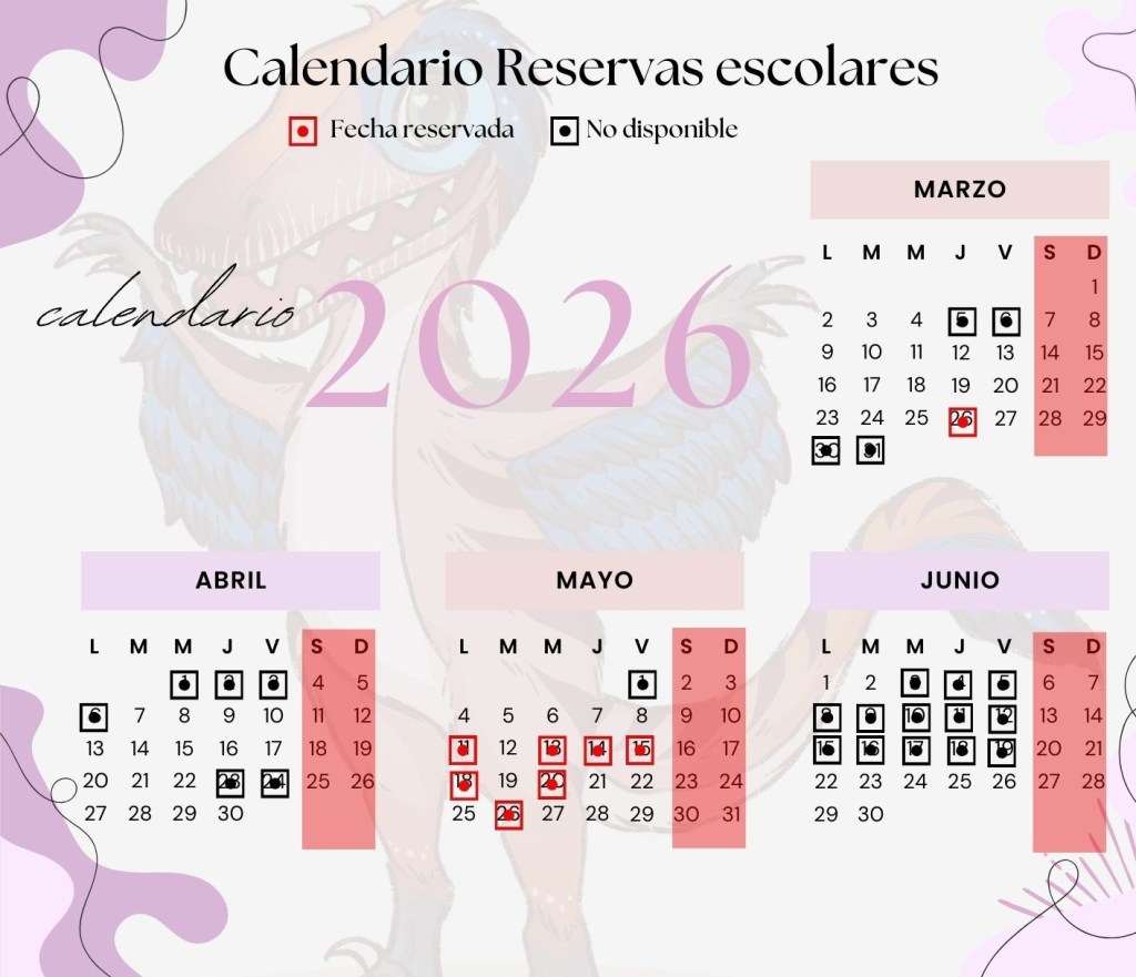 Consulta el calendario de fechas disponibles para vuestra visita escolar: